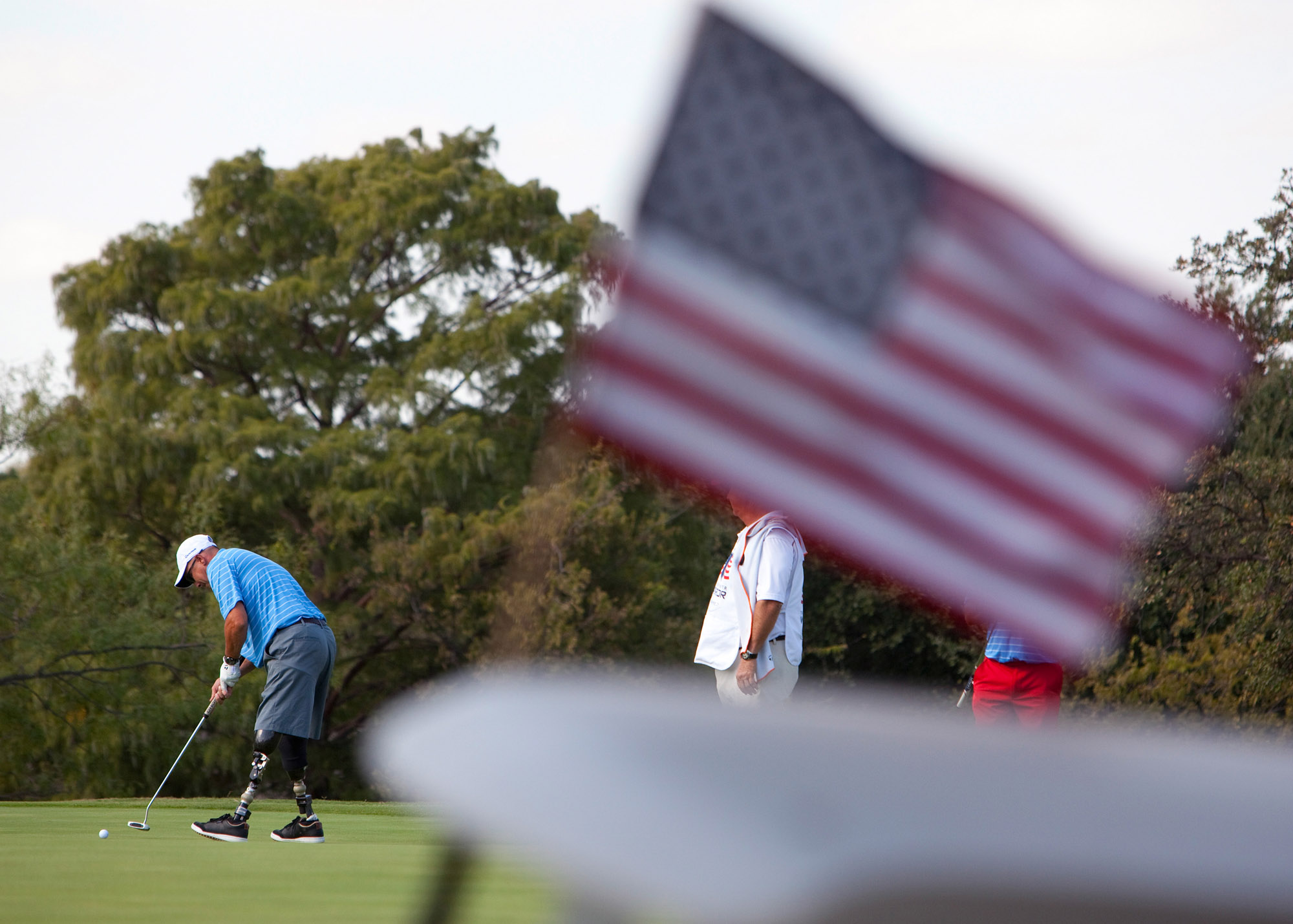 The Warrior Open is a competitive golf tournament featuring U.S. service members who were wounded in the global war on terror. Once selected, the warriors are invited to participate in the private tournament, where they have the opportunity to meet President Bush and network with other warriors and military service organizations.